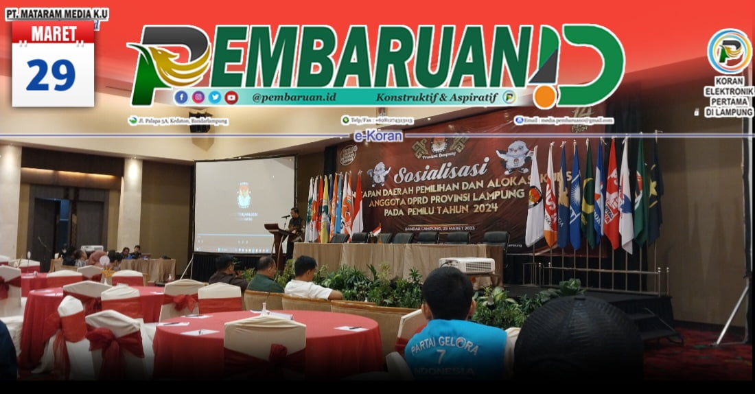 psiaceh.or.id/ – Komisi Pemilihan Umum (KPU) Provinsi Lampung mensosialisasikan alokasi kursi dan jumlah daerah pemilihan (Dapil) DPRD Provinsi Lampung pada Pemilu 2024, di Emersia Hotel, Rabu (29/03/2023).