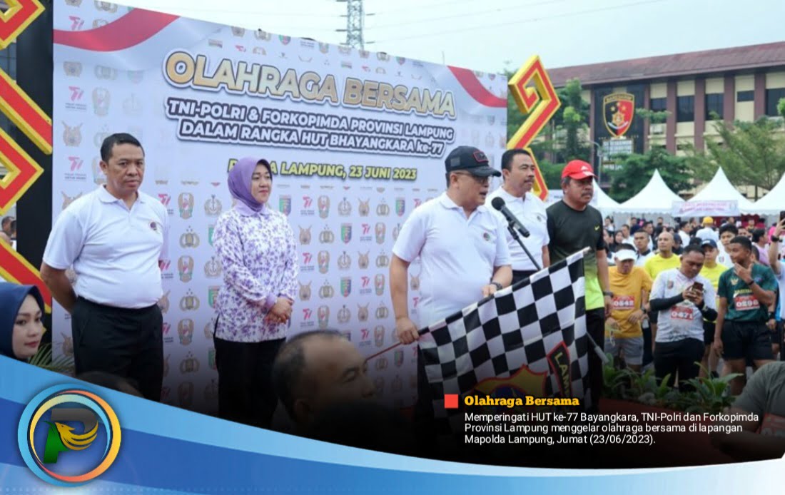 psiaceh.or.id/ – Memperingati HUT ke-77 Bayangkara, TNI-Polri dan Forkopimda Provinsi Lampung menggelar olahraga bersama di lapangan Mapolda Lampung, Jumat (23/06/2023).