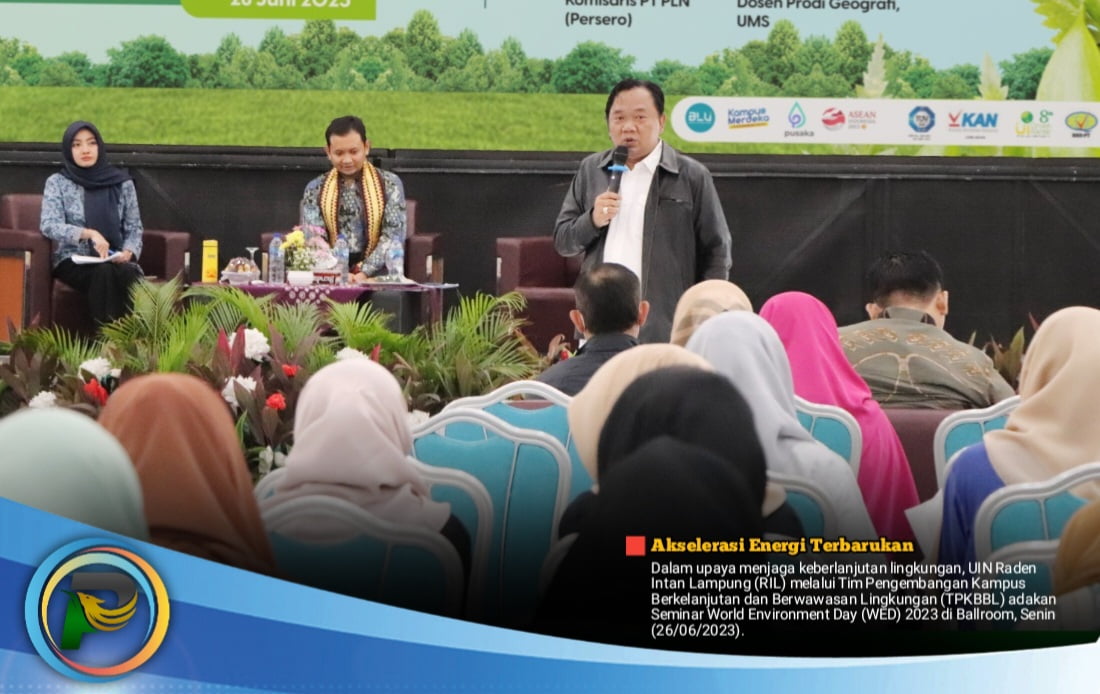 psiaceh.or.id/ – Dalam upaya menjaga keberlanjutan lingkungan, UIN Raden Intan Lampung (RIL) melalui Tim Pengembangan Kampus Berkelanjutan dan Berwawasan Lingkungan (TPKBBL) adakan Seminar World Environment Day (WED) 2023 di Ballroom, Senin (26/06/2023).