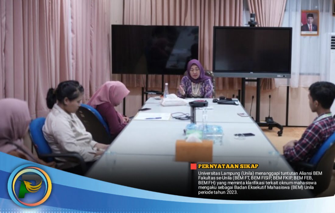 psiaceh.or.id/ – Universitas Lampung (Unila) menanggapi tuntutan Aliansi BEM Fakultas se-Unila (BEM FT, BEM FISIP, BEM FKIP, BEM FEB, BEM FH) yang meminta klarifikasi terkait oknum mahasiswa mengaku sebagai Badan Eksekutif Mahasiswa (BEM) Unila periode tahun 2023.