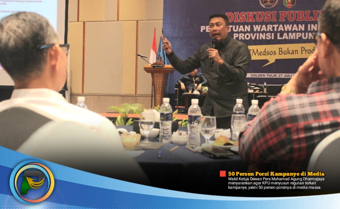 Hal tersebut dikatakan Agung disela diskusi bertema ‘Medsos Bukan Produk Pers’ yang digelar PWI Lampung di Golden Tulip, Bandarlampung, Kamis (27/07/2023).